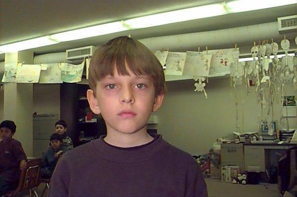 Me, Age 8. I had already developed circles under my eyes from watching The Simpsons every day.