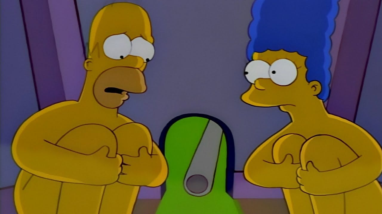 Credit: Screenshot from The Simpsons, Season 9, Episode 25, “Natural Born Kissers’' (17 May 1998). 20th Century Fox/Disney.